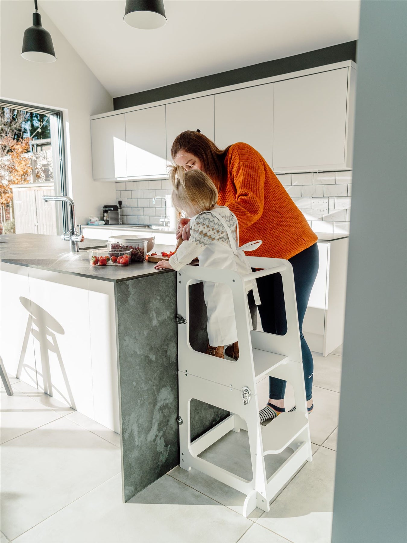 Bought the learning tower as a Christmas present for my grandson who is 18 months old. He loves it🤩. So far he’s helped his mommy make crumble topping for stewed apples, pastry for left over gammon pie and constructing pizza topping on base. He doesn’t need picking up now to see what mommy is doing in the kitchen
